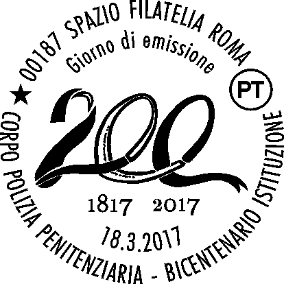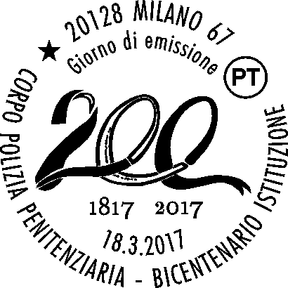 | Vignetta | riproduce il logo del 200° anniversario dell’istituzione del Corpo di Polizia Penitenziaria. Completano il francobollo la leggenda “CORPO DI POLIZIA PENITENZIARIA”, le date “1817 - 2017”, la scritta “ITALIA” e il valore “€ 0,95”. |