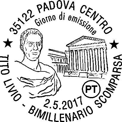 | Vignetta | riproduce, in primo piano a sinistra, un busto di Tito Livio realizzato da Lorenzo Larese Moretti, custodito nel Palazzo Loredan di Venezia, sede dell’Istituto Veneto di Scienze, Lettere ed Arti, e, sullo sfondo, il plastico del Foro di Augusto, realizzato da Italo Gismondi ed esposto nel complesso archeologico dei Mercati di Traiano di Roma. Completano il francobollo la leggenda “BIMILLENARIO DI TITO LIVIO” e le date “59 A.C. - 17 D.C.”, la scritta “ITALIA” e il valore “ € 0,95”. |