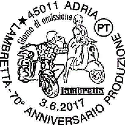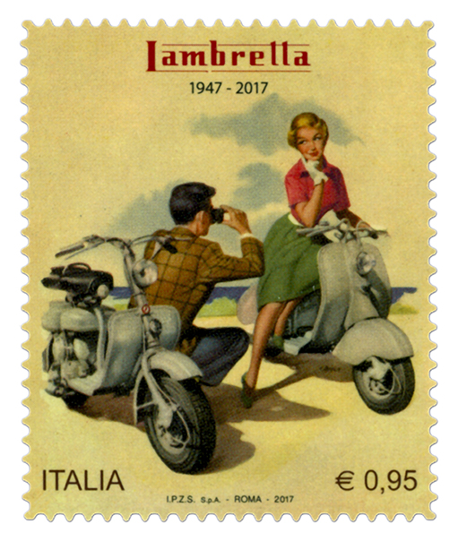 | Vignetta | riproduce un manifesto pubblicitario della Lambretta degli anni Cinquanta, realizzato dall’illustratore e cartellonista italiano Franco Mosca, conservato presso il Museo Scooter e Lambretta di Rodano. Completano il francobollo la leggenda “1947 - 2017”, la scritta “ITALIA” e il valore “€ 0,95”. |