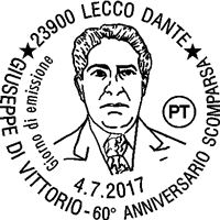 | Vignetta | un ritratto di Giuseppe Di Vittorio in primo piano e, sullo sfondo, una foto realizzata in occasione della manifestazione del 1° Maggio del 1952 a Cerignola; |
