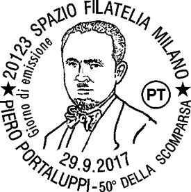 | Vignetta | raffigura un ritratto di Piero Portaluppi con, sullo sfondo, la riproduzione del progetto della centrale idroelettrica di Crevoladossola, conservato presso il CSAC - Centro Studi e Archivio della Comunicazione dell’Università degli Studi di Parma e realizzato in Piemonte tra il 1923 e il 1925, con la particolarissima torre a pagoda che ne caratterizza il fabbricato. Completano il francobollo la leggenda “PIERO PORTALUPPI” e le date “1888-1967”, la scritta “ITALIA” e il valore “ € 0,95”. |