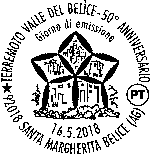 Emissione di un francobollo celebrativo del terremoto della Valle del Belìce, nel 50° anniversario.