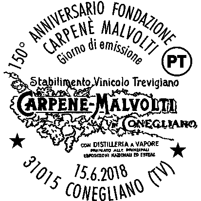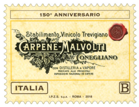 Emissione di un francobollo ordinario appartenente alla serie tematica “le Eccellenze del sistema produttivo ed economico” dedicato alla Carpenè Malvolti, nel 150° anniversario della fondazione