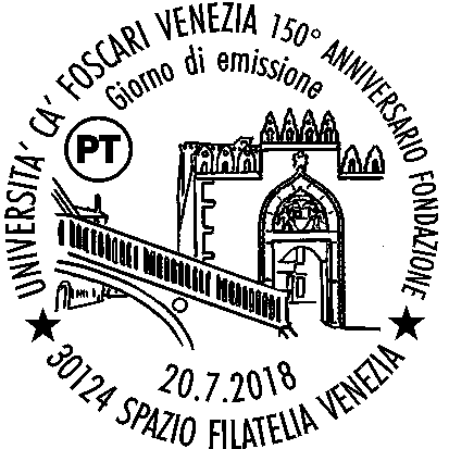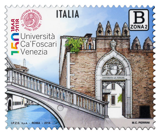Emissione di un francobollo ordinario appartenente alla serie tematica “le Eccellenze del sapere” dedicato all’Università Ca’ Foscari in Venezia, nel 150° anniversario della fondazione