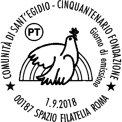 Emissione di un francobollo ordinario appartenente alla serie tematica “il Senso civico” dedicato alla Comunità di Sant’Egidio, nel cinquantenario della fondazione