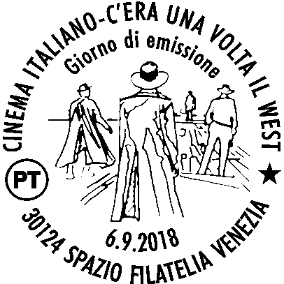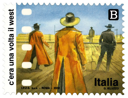 Completano il francobollo le leggende “C’ERA UNA VOLTA IL WEST”, la scritta “ITALIA” e l’indicazione tariffaria “B”. |