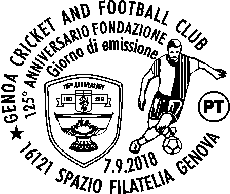 Completano il francobollo la leggenda “GENOA CRICKET AND FOOTBALL CLUB”, la scritta “ITALIA” e l’indicazione tariffaria “B”. |