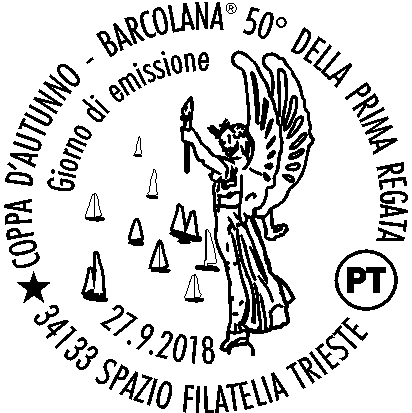 Emissione di un francobollo ordinario appartenente alla serie tematica “lo Sport” dedicato alla Coppa d’autunno - Barcolana, nel cinquantenario della prima regata.