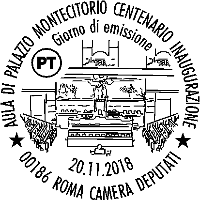 Emissione di un francobollo celebrativo dell’Aula di Palazzo Montecitorio, nel centenario dell’inaugurazione.
