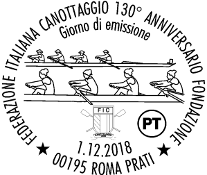 Emissione di un francobollo ordinario appartenente alla serie tematica “lo Sport” dedicato alla Federazione Italiana Canottaggio, nel 130° anniversario della fondazione