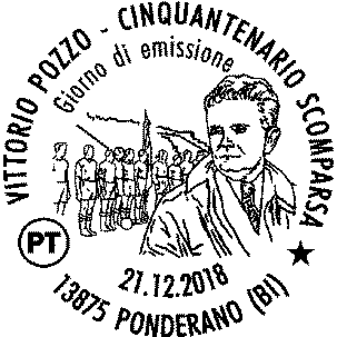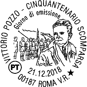 Completano il francobollo la leggenda “VITTORIO POZZO”, le date “1886 – 1968”, la scritta “ITALIA” e l’indicazione tariffaria “B”. |