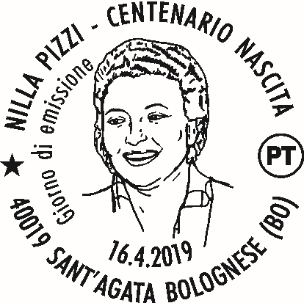 Completano il francobollo la leggenda “NILLA PIZZI”, la scritta “ITALIA” e