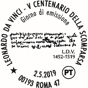 Completano i francobolli le rispettive leggende “L’OCCHIO”, “LEONARDO DA VINCI 1452-1519”, la scritta “ITALIA” e il valore tariffario
